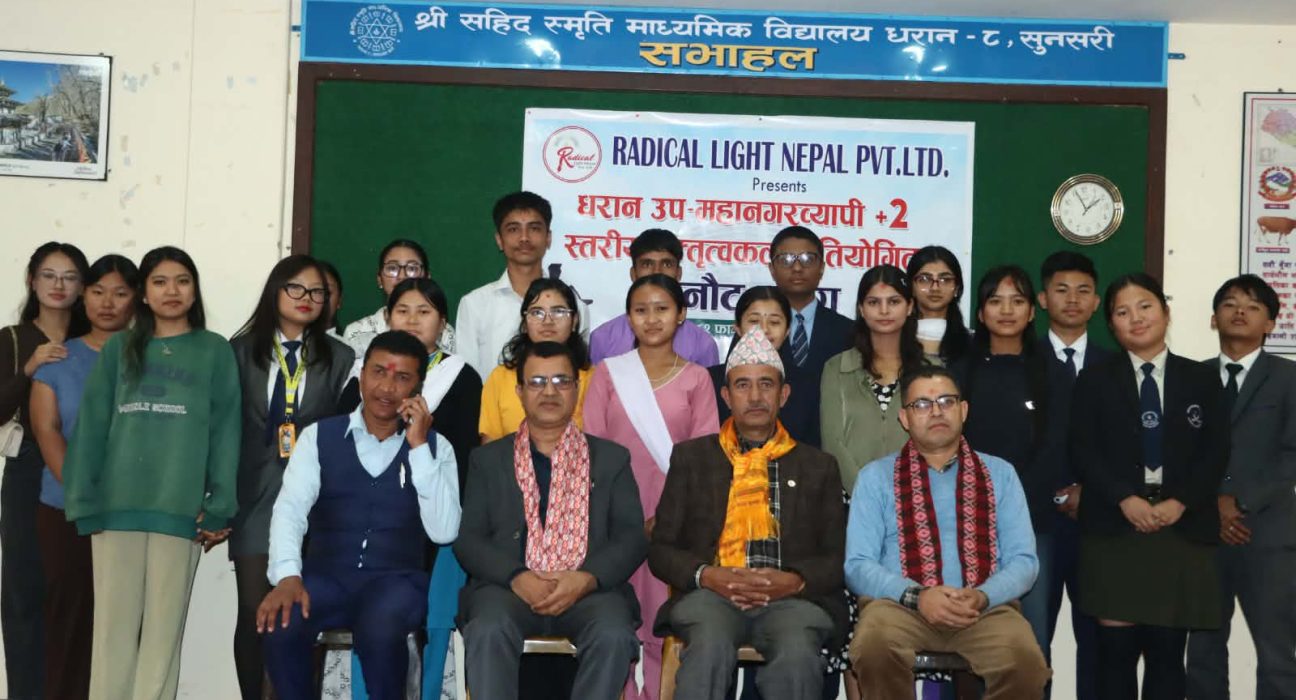 धरान: धरान उप–महानगरव्यापी अन्तर प्लस टु स्तरीय वक्तृत्वकला प्रतियोगिताको छनोट चरण धरान-८ स्थित सहिद स्मृति मा.बि.को सभाहलमा आइतबार सम्पन्न भएको छ।