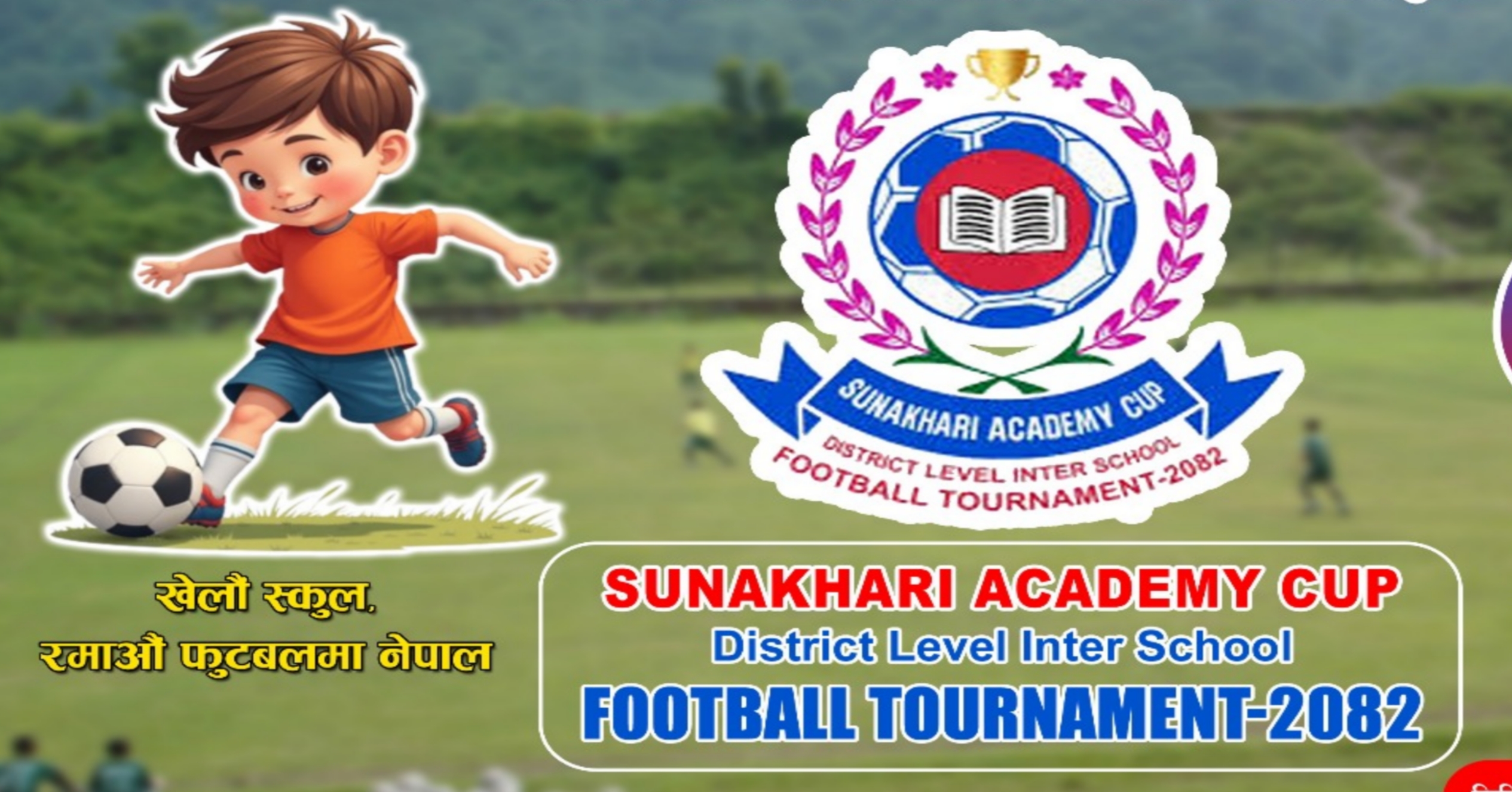 धरानमा हुन लागेको सुनसरी जिल्ला स्तरीय ‘सुनाखरी एकेडेमी कप’ अन्तर विद्यालय फुटबल प्रतियोगितामा १६ विद्यालयले सहभागिता दर्ता गराएका छन्। मङ्सिर ७ गतेदेखि १७ गतेसम्म सञ्चालन हुने प्रतियोगिता धरान–१२ स्थित सुनाखरी एकेडेमीद्वारा आयोजना गरिनेछ।