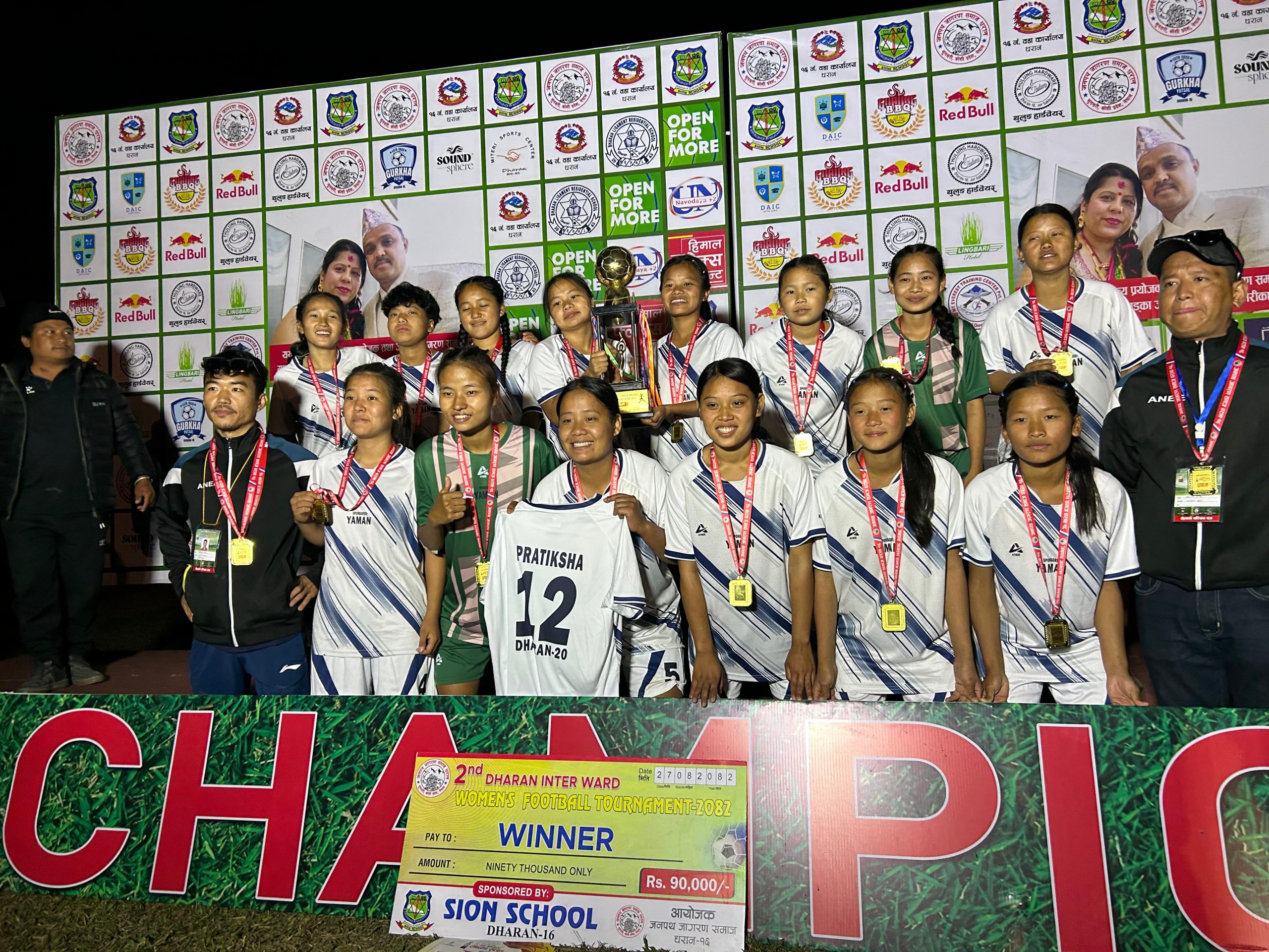 धरान रंगशालामा शनिबार भएको फाइनल खेलमा धरान ११ लाई १–० ले पराजित गर्दै धरान २० ले उपाधि चुमेको हो । खेलमा धरान २० का संञ्जिता राईले ३१ औ मिनेटमा गरेको गोल नै निर्णयक गोल बनयो ।