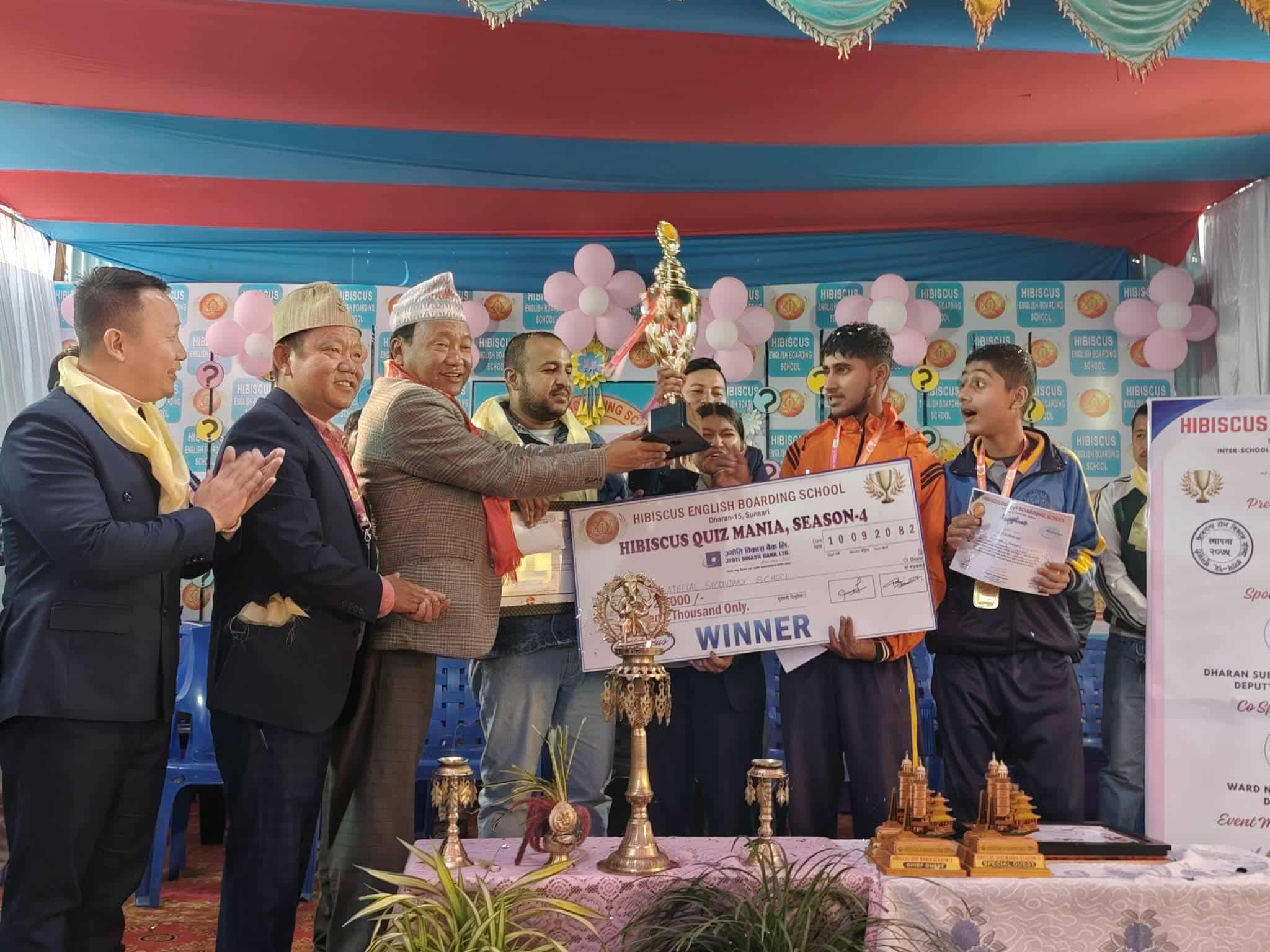 धरान: धरान–१५ स्थित हिबिस्कस इङलिस बोर्डिङ स्कुलको आयोजनामा हिबिस्कस क्विज मेनिया–२०८२ सिजन–४ को ग्रान्ड फिनाले बिहीबार स्कुलको प्राङ्गणमा सम्पन्न भएको छ।