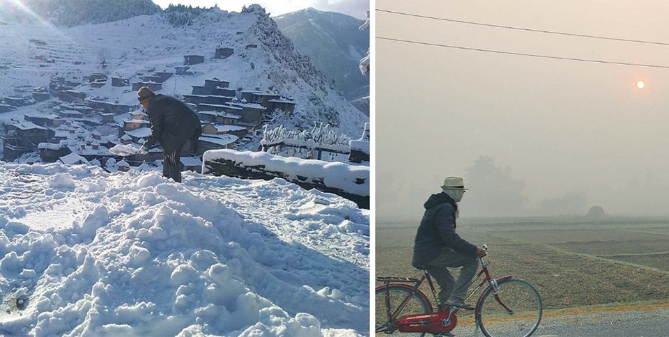 आजको मौसम, उच्च पहाडी तथा हिमाली भूभागमा हिमपात, तराईमा हुस्सु
