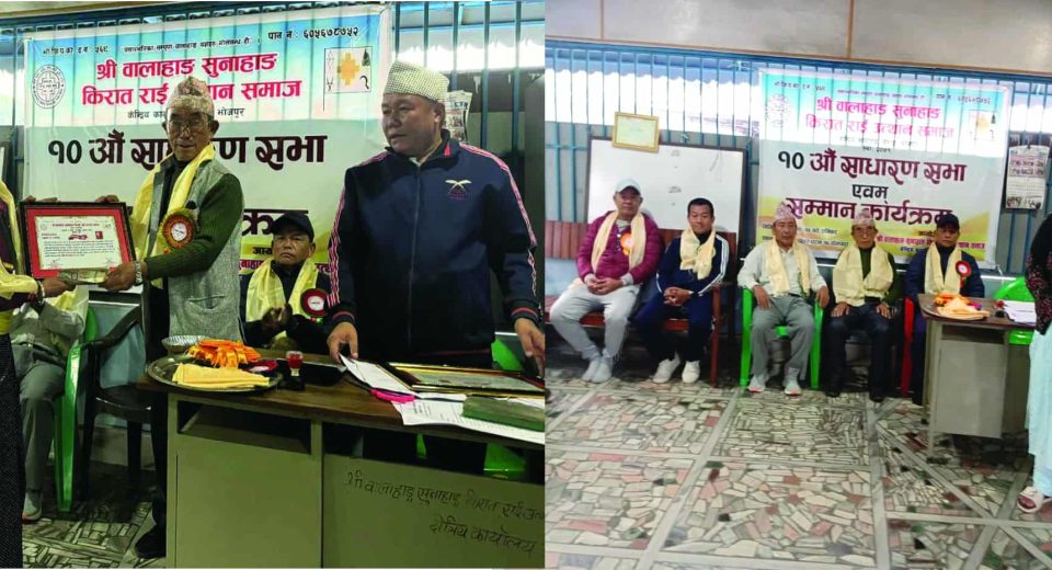 धरान: वालाहाङ सुनाहाङ किरात राई उत्थान समाज केन्द्रीय समिति हतुवागढी भोजपुरले संस्थामा उत्कृष्ट कारोवार गर्ने तीनजनालाई सम्मान गरेको छ ।क्षेत्रीय कार्यालय धरानमा शनिवार आयोजित १० औं साधारण सभाका अवसरमा समाजले सो सम्मान गरेको हो ।सम्मानित हुनेहरुमा समाजका सदस्य बराहक्षेत्र नगरपालिका वडा नं. १ झण्डाचोकका नेत्रप्रसाद वालाहाङ राई, इटहरी–१९ का भानुभक्त वालाहाङ राई र सदस्य बराहक्षेत्र […]